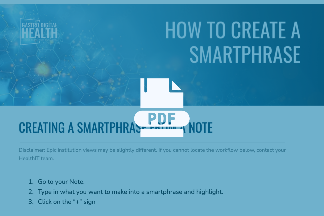 There are a few common use cases for SmartPhrases in IBD patients’ medical records. These templates will get you started and help you better understand how to put SmartPhrases into practice.